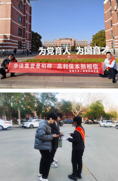 大河网讯 2026年1月9日,富德生命人寿焦作中支在河南理工大学中心广场,面向高校学生开展了一场以“非法集资是陷阱,高利保本别相信”为主题的金融安全宣传活动。活动旨在提升学生群体对非法集资等金融风险的识别与防范能力,筑牢校园金融安全防线。